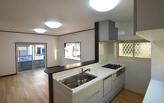 | システムキッチン(食洗機付)新調・トイレウォシュレット付新調・UB新調・洗面化粧台新調・洗濯パン新調 |